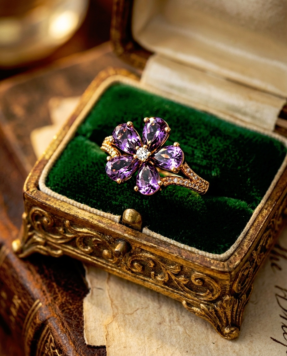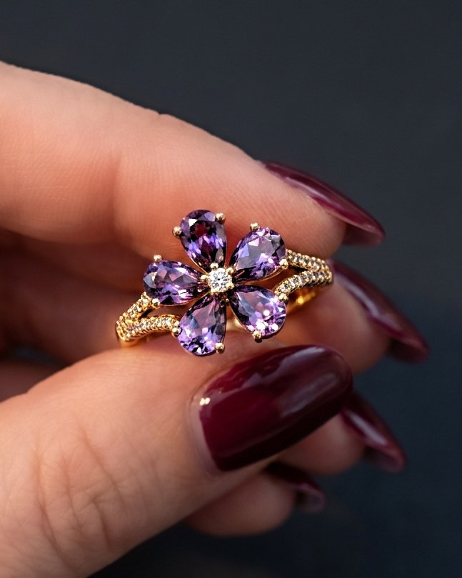 انگشتر جواهری گل بنفش پایه گلد XUPING